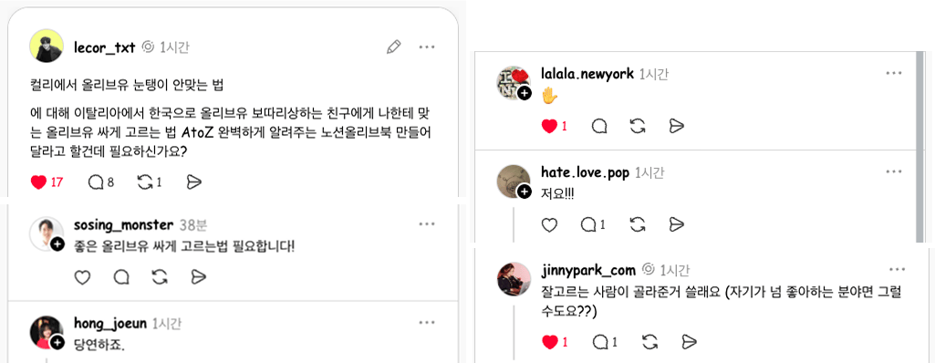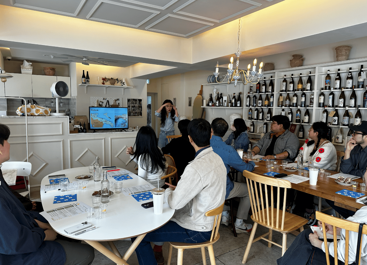 ์ด๋ฐ ์ฐธ์ฌ์๋ฅผ ๋๊ณ , ํธ์คํธ๋ ์ฌ๋ฆฌ๋ธ ์ค์ผ ์์ฐ ์ง์ญ๋ณ ํน์ง, ์ฌ๋ฆฌ๋ธ ์ถ์ถ๋ฐฉ์์ ๋ฐ๋ฅธ ๋ถ๋ฅ, ์ฑ๋ถ์ ํน์ง ๋ฑ์ ์ค๋ช ํ๊ณ ์ฌ๋ฆฌ๋ธ ์ค์ผ ์์์ ๋์ต๋๋ค. ์ฐธ์ฌ์๋ ๋ถ๋ช ๋ง์์ดํ๊ณ , ์ ๊ธฐํด ํ๋ฉฐ, ์ฐจ์ด๋ฅผ ์์๋ด๊ธฐ ์ํด ์ ์ฐ๋ฉด์ ์ด๋ ๊ฒ ๋ฌป์ต๋๋ค. โ์ ๊ฐ ๋จน์ ์ด๊ฒ ์ผ๋ง์ง๋ฆฌ์ธ๊ฐ์?โ