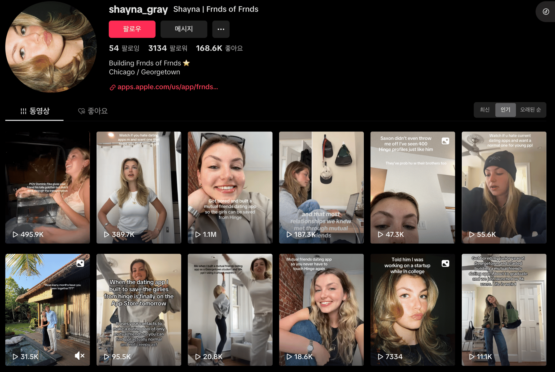 프랑스의 사회학자 피에르 부르디외(Pierre Bourdieu)는 사회적 자본을 '관계를 통해 동원할 수 있는 자원'이라고 정의 내렸습니다. 쉽게 말해, 내 인맥이 곧 내 자산이란 얘기죠. 그리고, 이 앱은 ‘데이트 하고 싶다!!!!!!’라는 니즈가 강한 1-20대들이 거주하고 있는 틱톡을 통해 끌고 왔습니다.